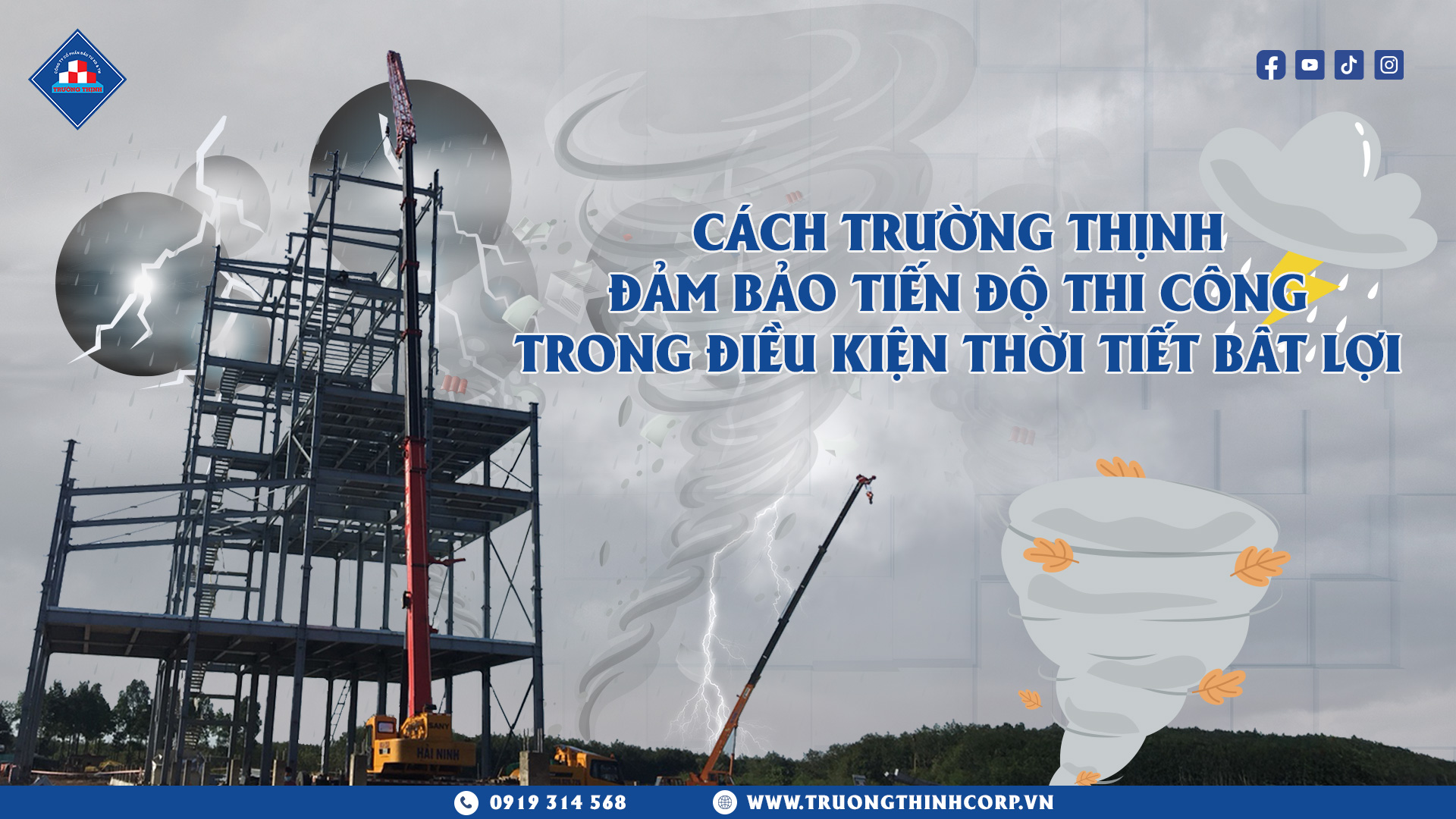 Trong ngành xây dựng, yếu tố thời tiết luôn là một trong những thách thức lớn ảnh hưởng trực tiếp đến tiến độ và chất lượng công trình. Tuy nhiên, tại Công ty CP Đầu Tư Xây Dựng & Thương Mại Trường Thịnh, chúng tôi không chỉ nhìn nhận đây là rủi ro mà còn là cơ hội để thể hiện năng lực tổ chức, tinh thần chủ động và trách nhiệm với đối tác, khách hàng.