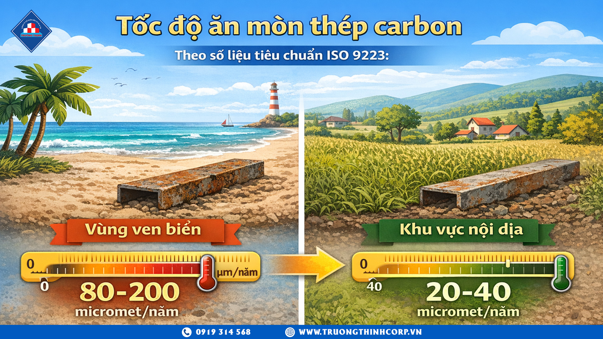 Thách thức lớn nhất của kết cấu thép tại Việt Nam là môi trường nhiệt đới ẩm, nhiều khu vực ven biển có hàm lượng muối cao. Để đạt tuổi thọ từ 50 đến 100 năm, kết cấu thép cần được xử lý bề mặt đúng tiêu chuẩn: làm sạch đạt cấp SA 2.5 (tiêu chuẩn ISO 8501), sơn lót epoxy chống gỉ và lớp phủ hoàn thiện chịu thời tiết. Với hệ thống chống ăn mòn đúng kỹ thuật, tuổi thọ kết cấu thép tương đương hoặc vượt trội so với BTCT trong điều kiện khí hậu Việt Nam.