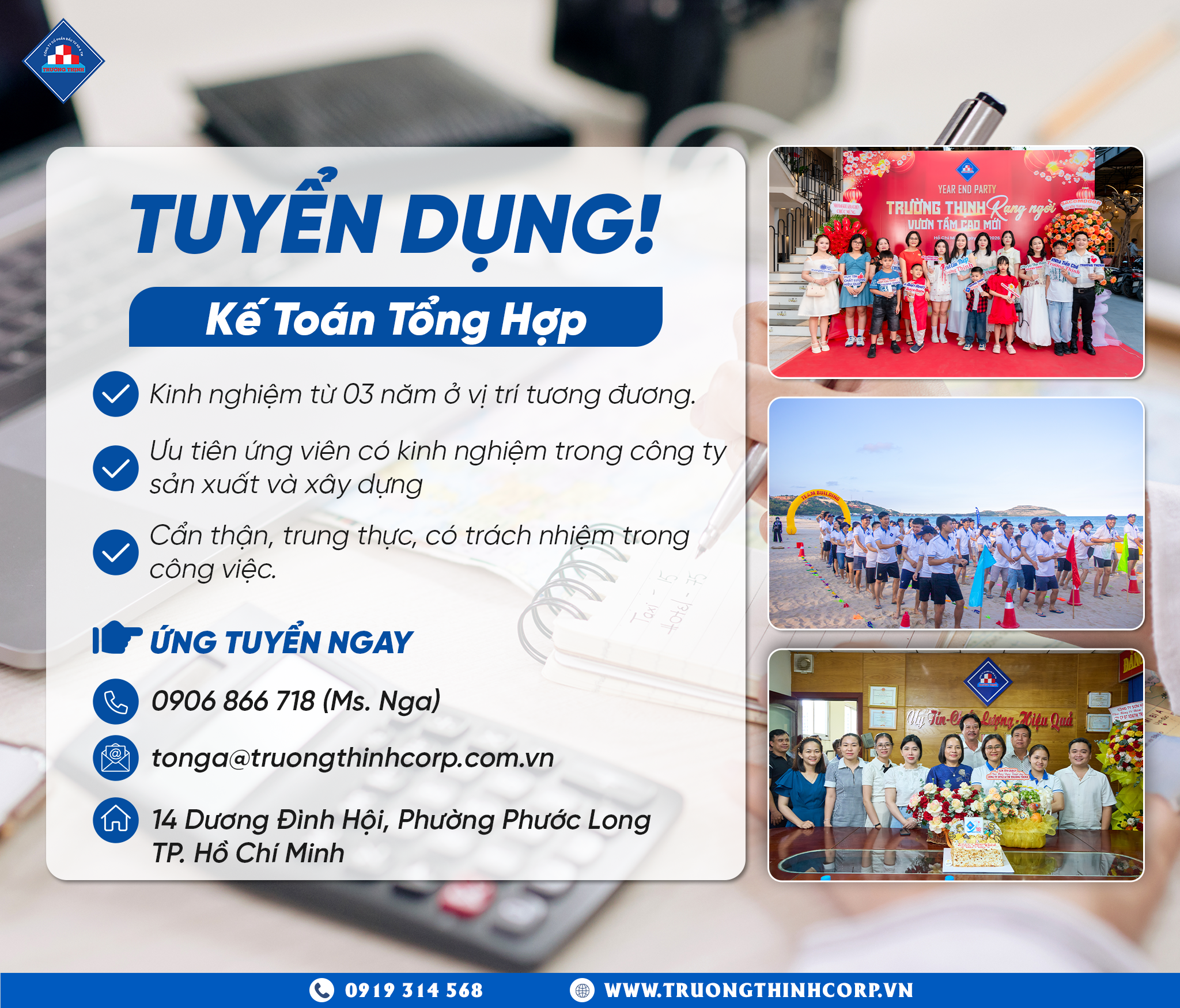Tối thiểu 3 năm kinh nghiệm, ưu tiên từng làm việc trong công ty sản xuất hoặc xây dựng |