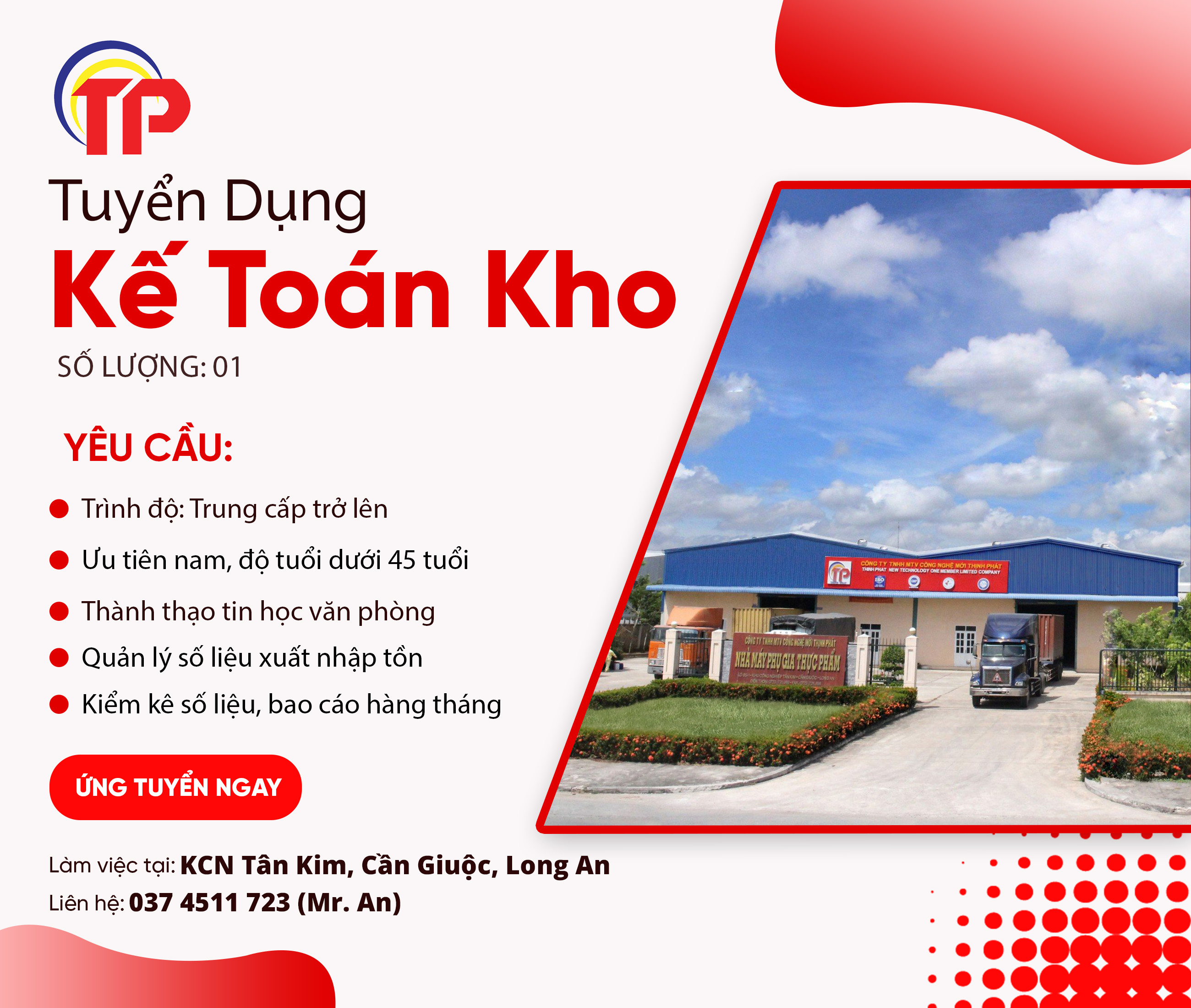 Ưu tiên ứng viên nam, độ tuổi dưới 45 tuổi.